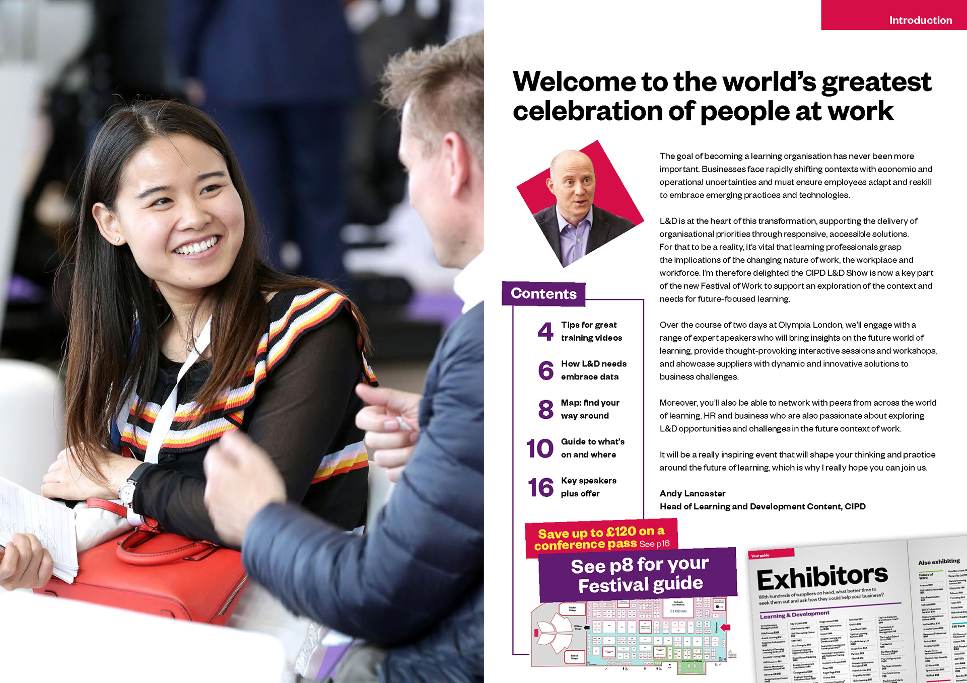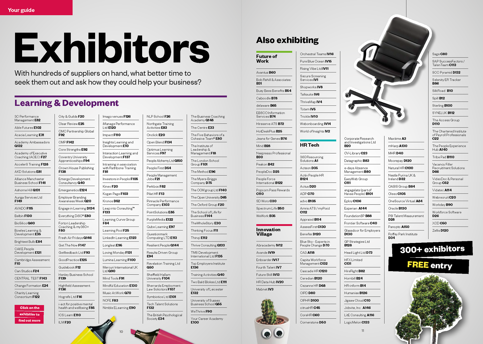 Promotional guides to drive ticket sales for the UK's largest HR conference and exhibition. Role: art editor and designer. Client: Kayleigh Pavelin, Haymarket Business Media.