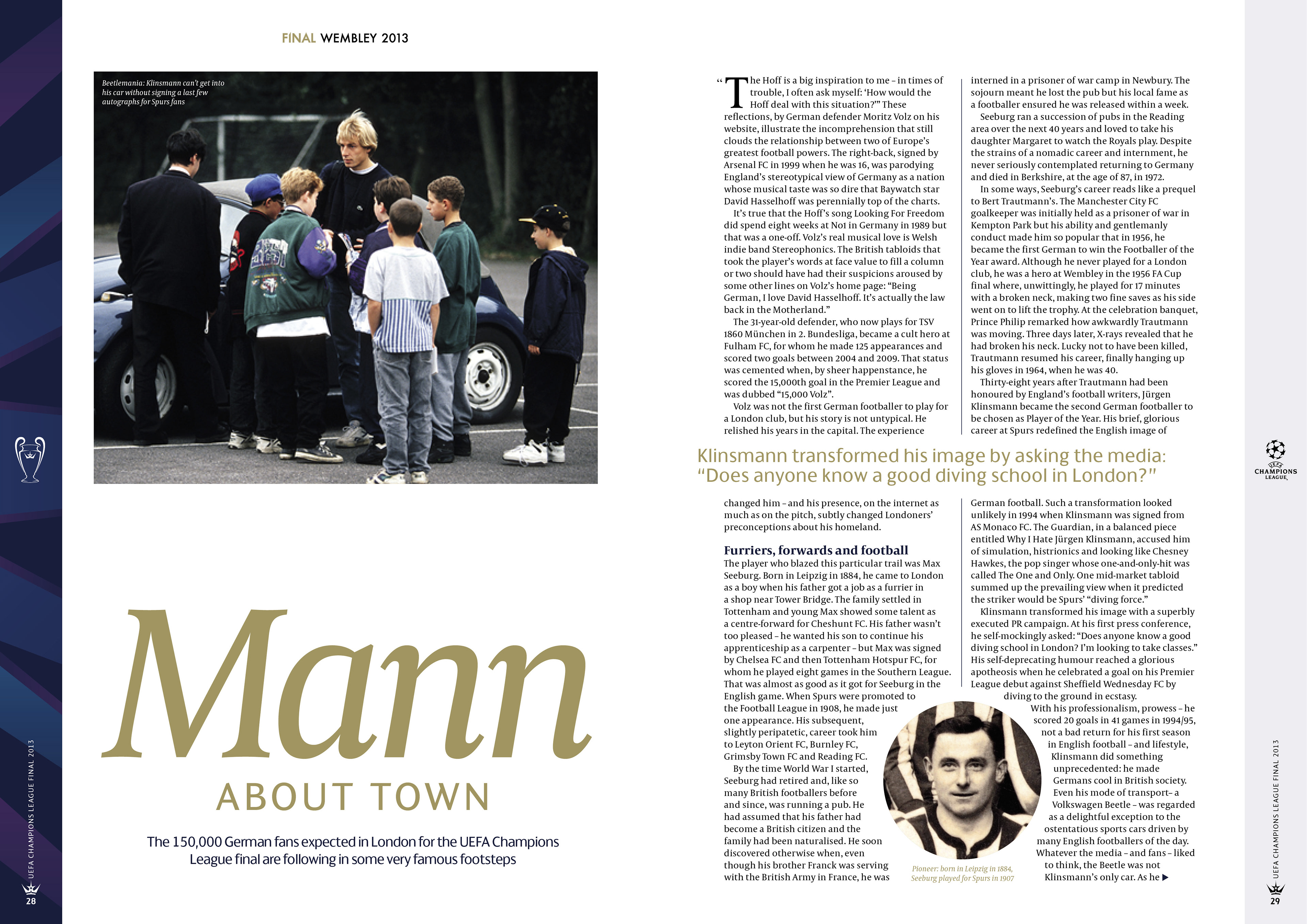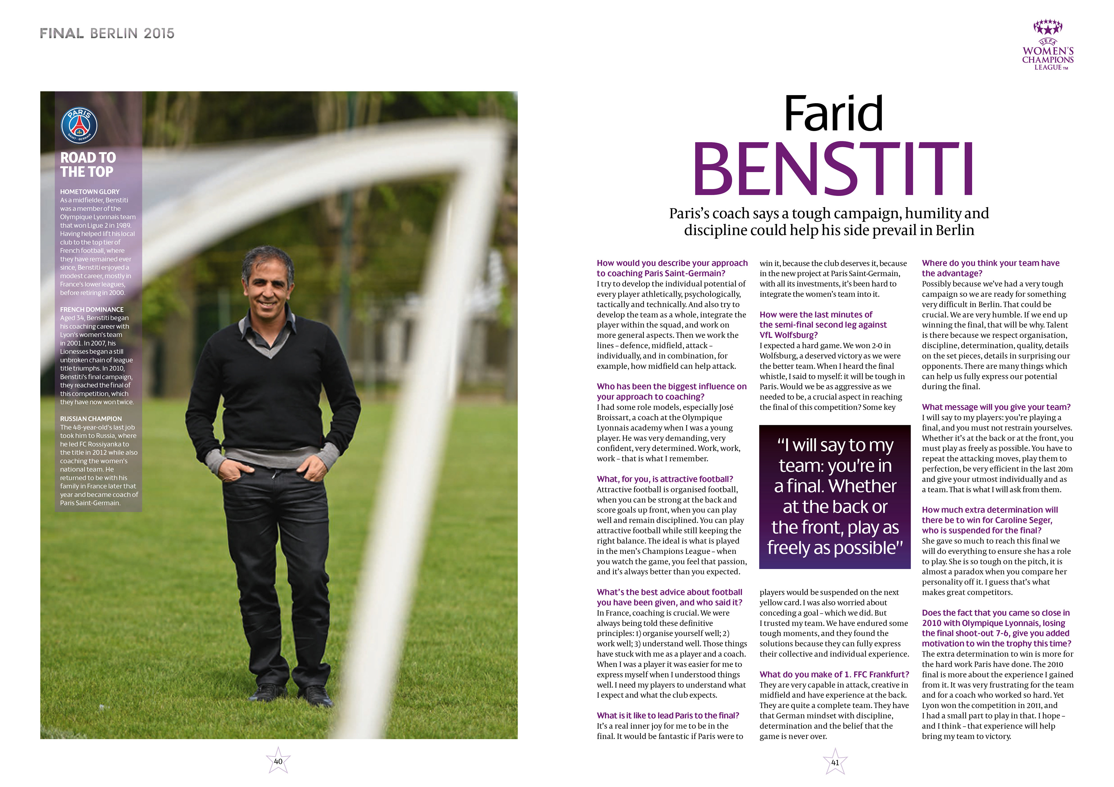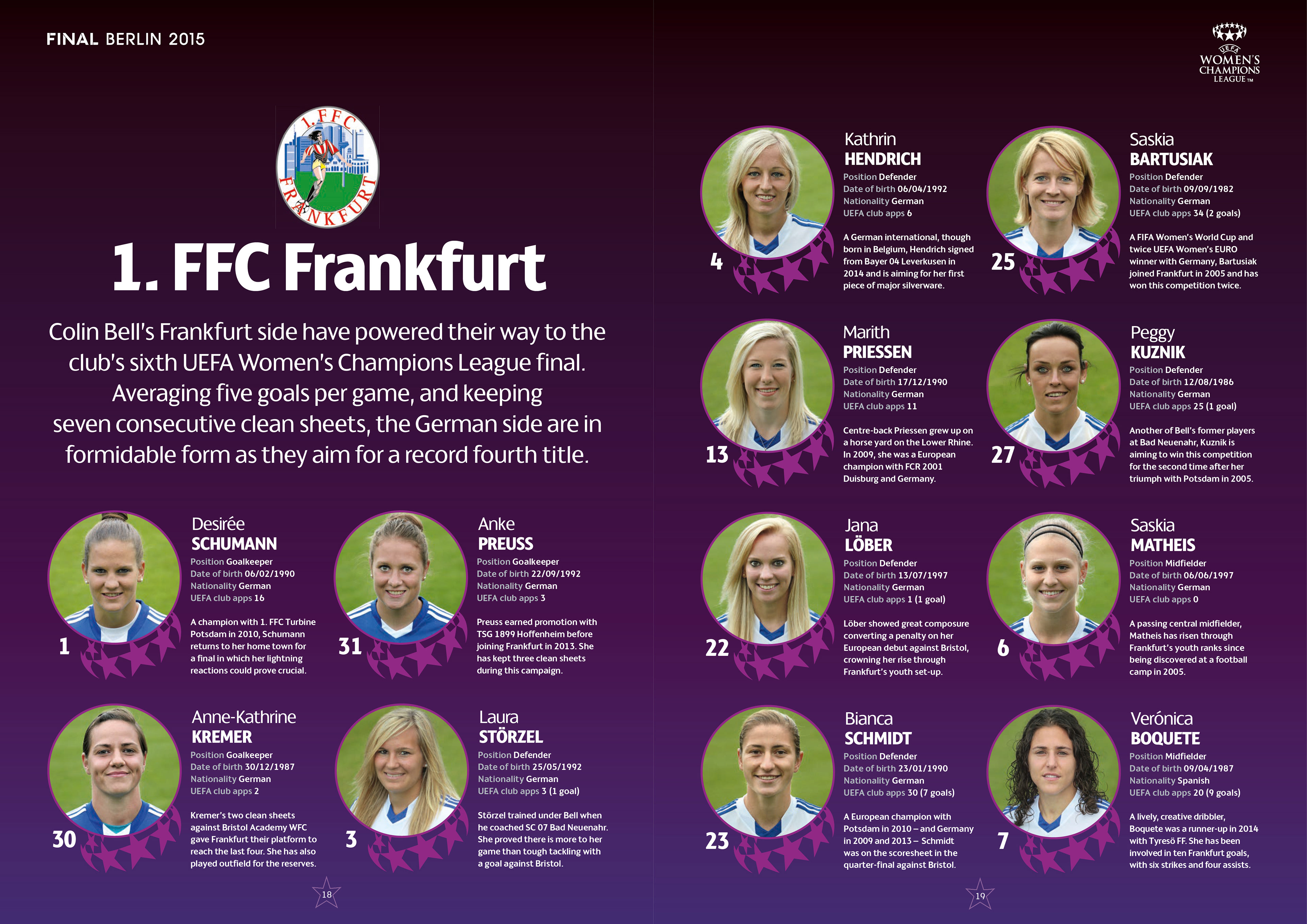 Role: contributing art editor and designer on the UEFA Champions League Final and UEFA Womens Champions League Final programmes for five years to 2015. Clients: Aubrey Smith and Paul Frost, Haymarket Media Group.
