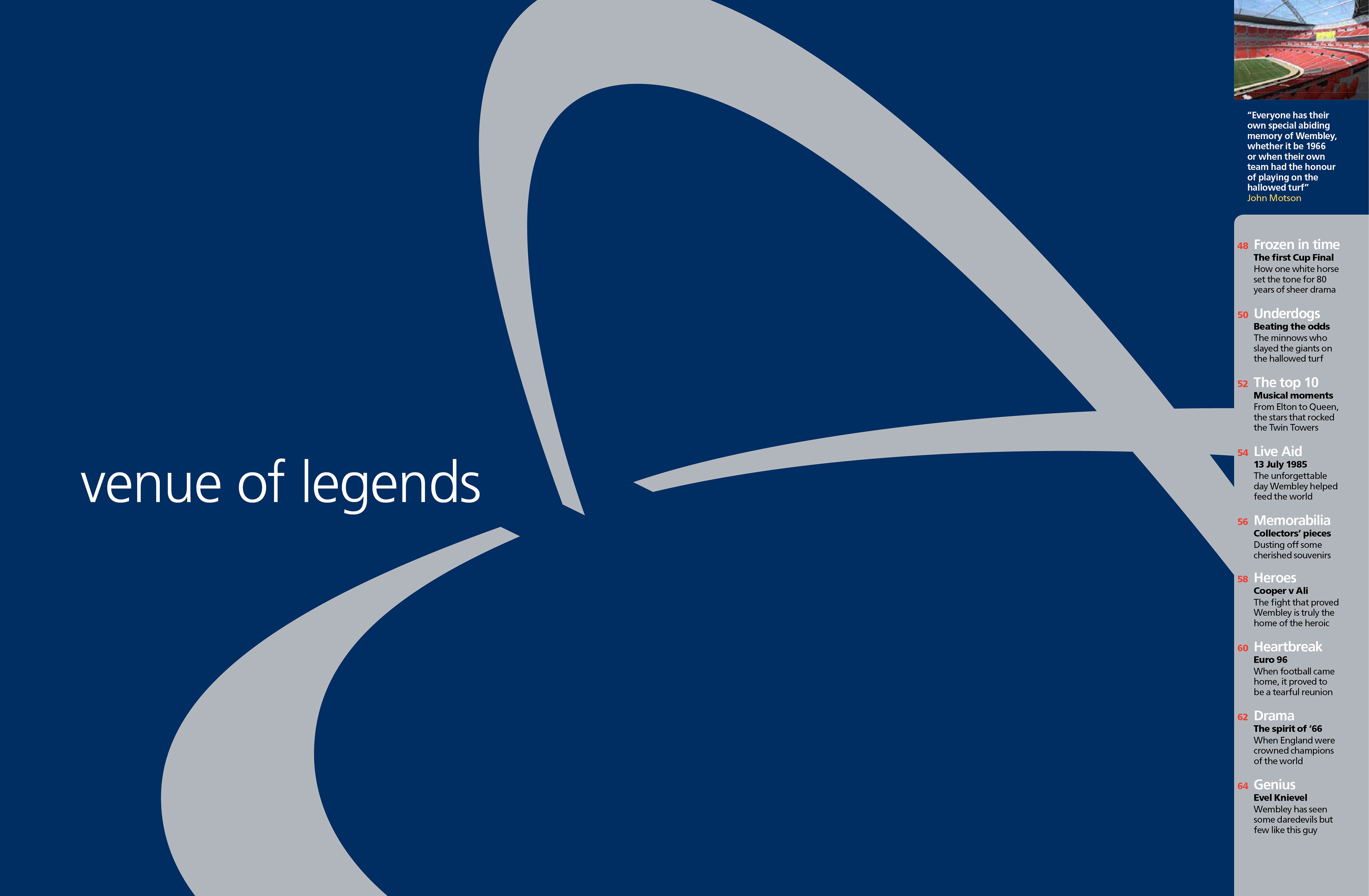 Wembley Stadium opening commemorative brochure. Role: designer, with Ewan Buck and Mikey Carr (illustrations). Client: Haymarket Network.